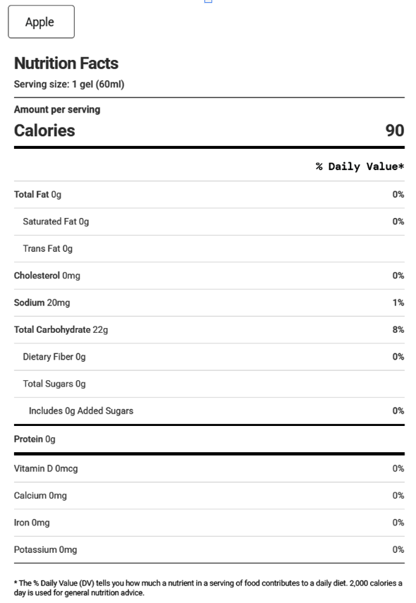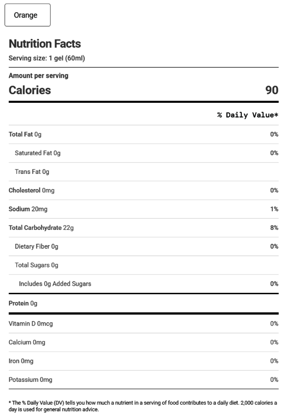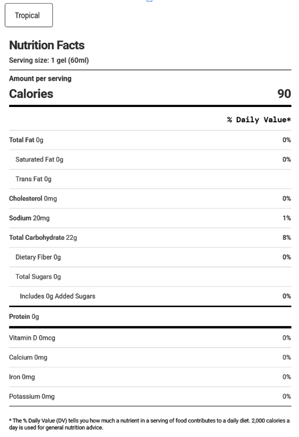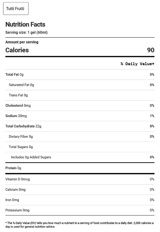 - Serving size: 1 gel (60ml)