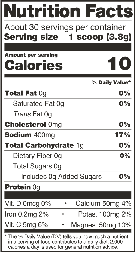 - Serving Size: 1 scoop (3.8g)