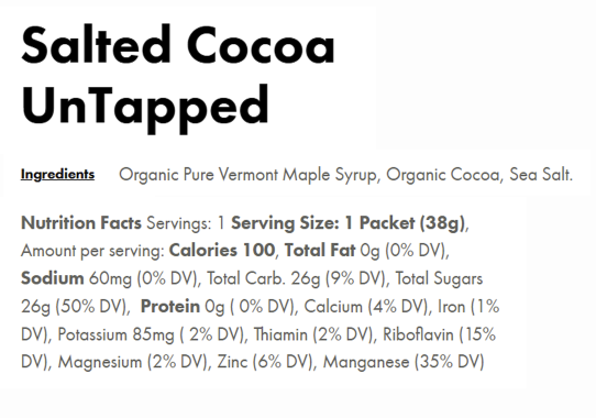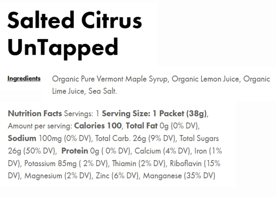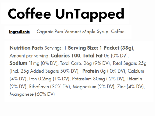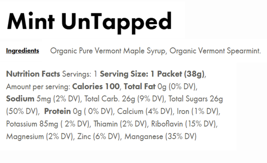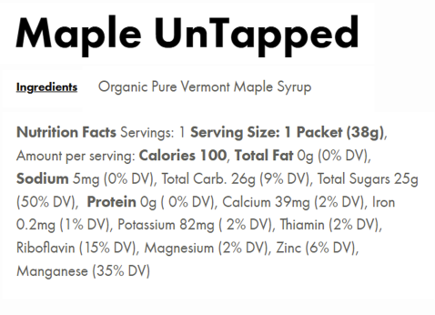 UnTapped Maple Syrup contains all natural carbohydrates, and provides prolonged, sustained energy rather than offering a quick burst and subsequent crash. Exclusively sweetened with Pure Vermont Maple Syrup, and no cut-rate carbohydrates like maltodextrin, which can be found in other energy gel offerings. Maple Syrup has many naturally occurring micro and macro nutrients that your body requires to perform at its highest level. UnTapped offers the simplest conveniently packaged energy gel on the market. UnTapped uses only real ingredients to provide better tasting, better digesting, better performing athletic nutrition.